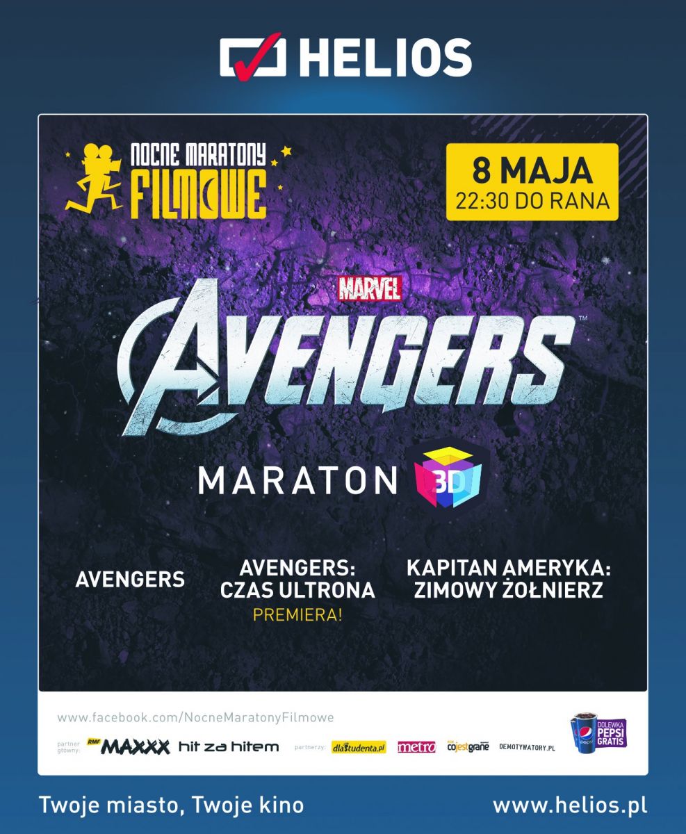 Współpraca takich indywidualności jak Iron Man, Hulk, Czarna Wdowa, Thor czy Kapitan Ameryka daje nie tylko gwarancję sukcesu w walce ze złem, ale i świetnego humoru. Do tego oszałamiające efekty specjalne, nieustannie trzymająca w napięciu akcja i wszystko to w formacie 3D! Zagramy Avengers, potem jeszcze Kapitan Ameryka: Zimowy żołnierz i na koniec premierowo Avengers: Czas Ultrona.