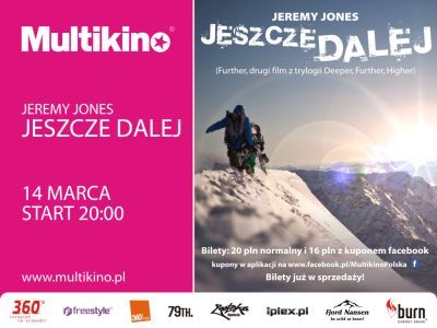 14 marca w czwartek o godz. 20:00, zapraszamy do Multikina w Rzeszowie na pokaz specjalny filmu JEREMY JONES: JESZCZE DALEJ, drugiej części niezwykłej snowboardowej trylogii Jeremy Jonesa.