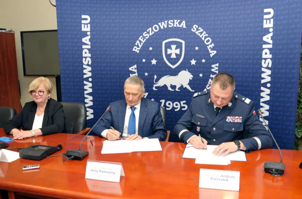 Wspólne realizowanie działań w zakresie bezpieczeństwa i porządku publicznego, wymiana doświadczeń i działalność profilaktyczna oraz podniesienie jakości kształcenia naszych studentów to tylko niektóre założenia porozumienia pomiędzy WSPiA Rzeszowską Szkołą Wyższą a Komendą Wojewódzką Policji w Rzeszowie. Porozumienie w sprawie współpracy zostało podpisane w czwartek 25 września 2025 r.